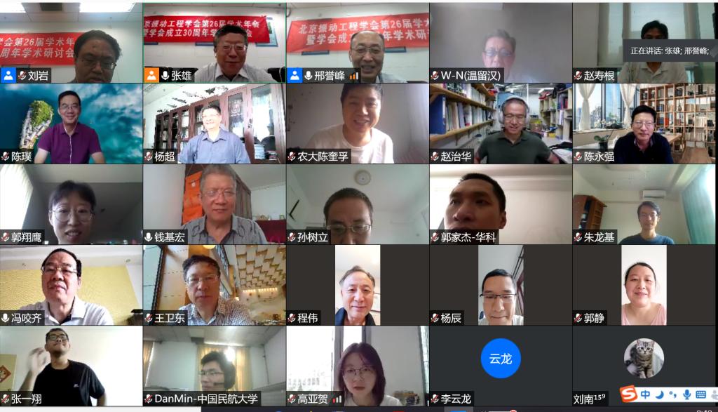 2020年8月29日,由北京振动工程学会主办,清华大学航天航空学院承办的第26届学术年会暨学会成立30周年学术研讨会成功举办。大会主席由学会理事长、437ccm必赢国际邢誉峰教授和学会副理事长、清华大学张雄教授共同担任。由于疫情原因,本次年会以线上和线下相结合的方式召开,参会人数近百人,部分参会人员来自北京之外省份。线上采用的是腾讯会议,线下主会场设在437必赢会员中心。