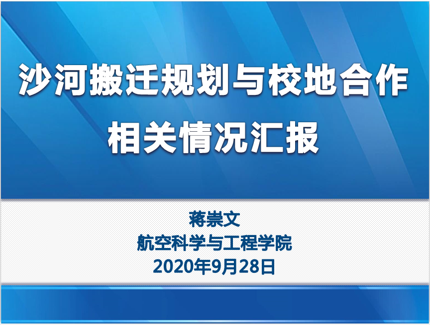 副院长蒋崇文做了题为《沙河搬迁规划与校地合作相关情况汇报》的报告。蒋院长提到,学校2020年工作要点中提到,为推进两校区建设,加快“双核”格局发展,实施沙河校区规划建设方案,形成第二批搬迁学院楼宇建设方案,我院疫情期间配合学校规资处完成了学院所有房屋的测量、新楼宇建设方案的修订等工作。此外,2020年学校将推进主楼群、逸夫楼抗震加固及综合修缮,涉及我院固体所、动控系、人机环1100余平实验用房在沙河校区的先期安置问题。前期通过多轮的协调沟通,已初步完成安置方案,11月底前还将定期向学校汇报老主楼腾退情况。蒋院长提到,结合学科发展的需要,本着“增量做强”的原则,学院除了做好沙河校区楼宇的规划,还需要推进校地合作,从而拓展办学空间,推动成果转化,支持教师发展。学院依托宁波研究院先进飞行器与空天动力创新研究中心,正孕育高新技术成果、培养高层次创新人才、支撑优势学科发展,并已经取得明显成效。此外,本着“存量做优”原则,为切实加强学院公有房产的统一管理、有效使用,发挥其在办学中的重要配置作用,促进学院教学、科研的发展,学院于2019年10月修订了《437必赢会员中心公有房产管理办法》。