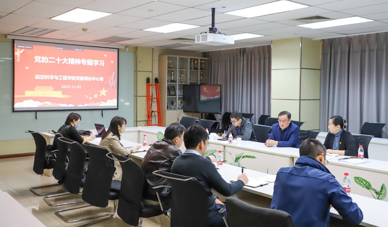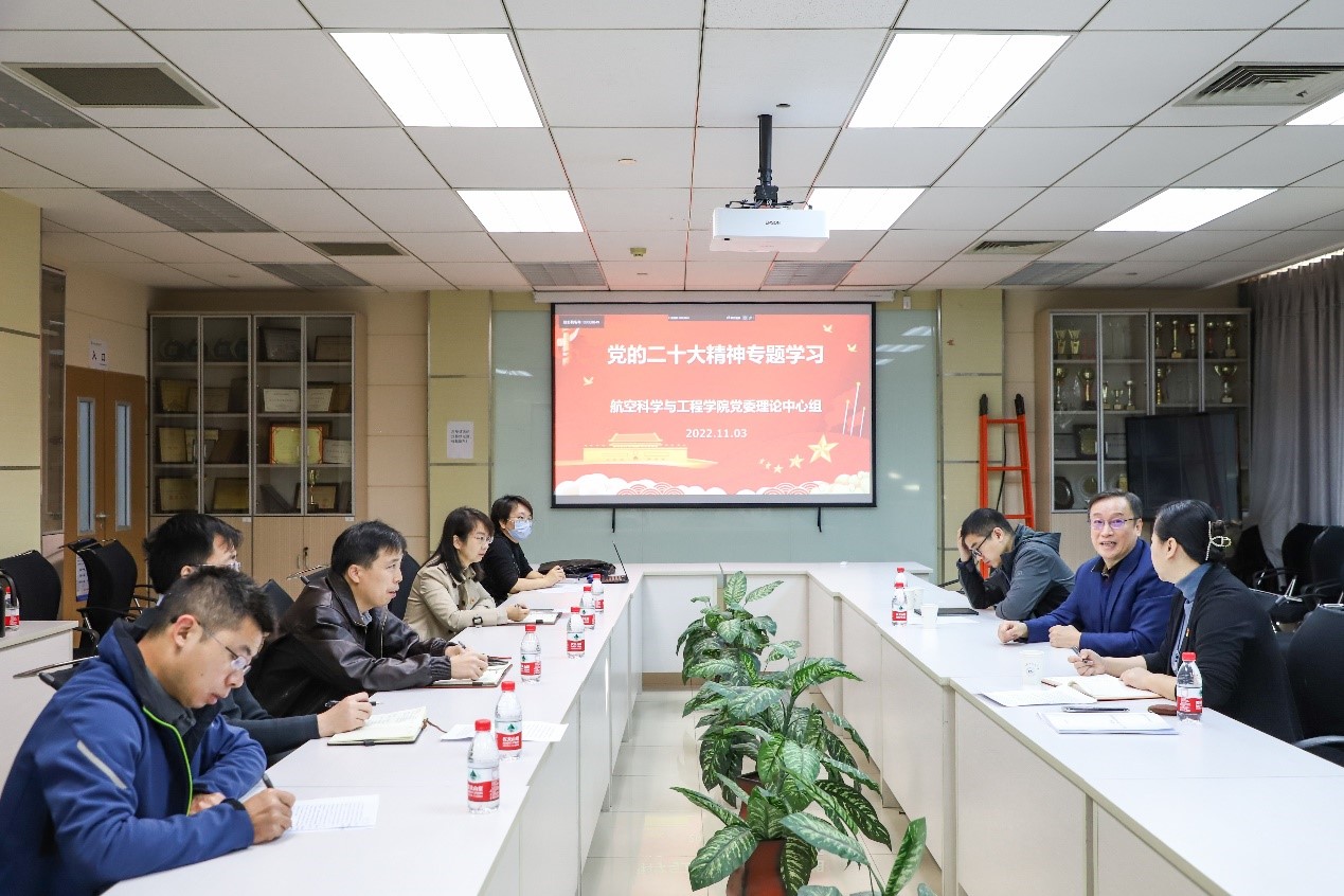 最后,陶智副校长强调,学习宣传贯彻党的二十大精神是当前和今后一个时期学校的首要政治任务,要做到“三个深刻领悟”,一是要深刻领悟“两个确立”的决定性意义,二是要深刻领悟习近平新时代中国特色社会主义思想的立场、观点和方法,三是要深刻领悟科技创新驱动发展的重要意义。学院领导班子和党委委员要带头学习贯彻党的二十大精神,紧密联系学校和学院的实际,形成并细化推动落实具体方案。航空学院要坚守为党育人、为国育才的初心使命,坚持立德树人根本任务,为建设教育强国、科技强国、人才强国贡献力量。