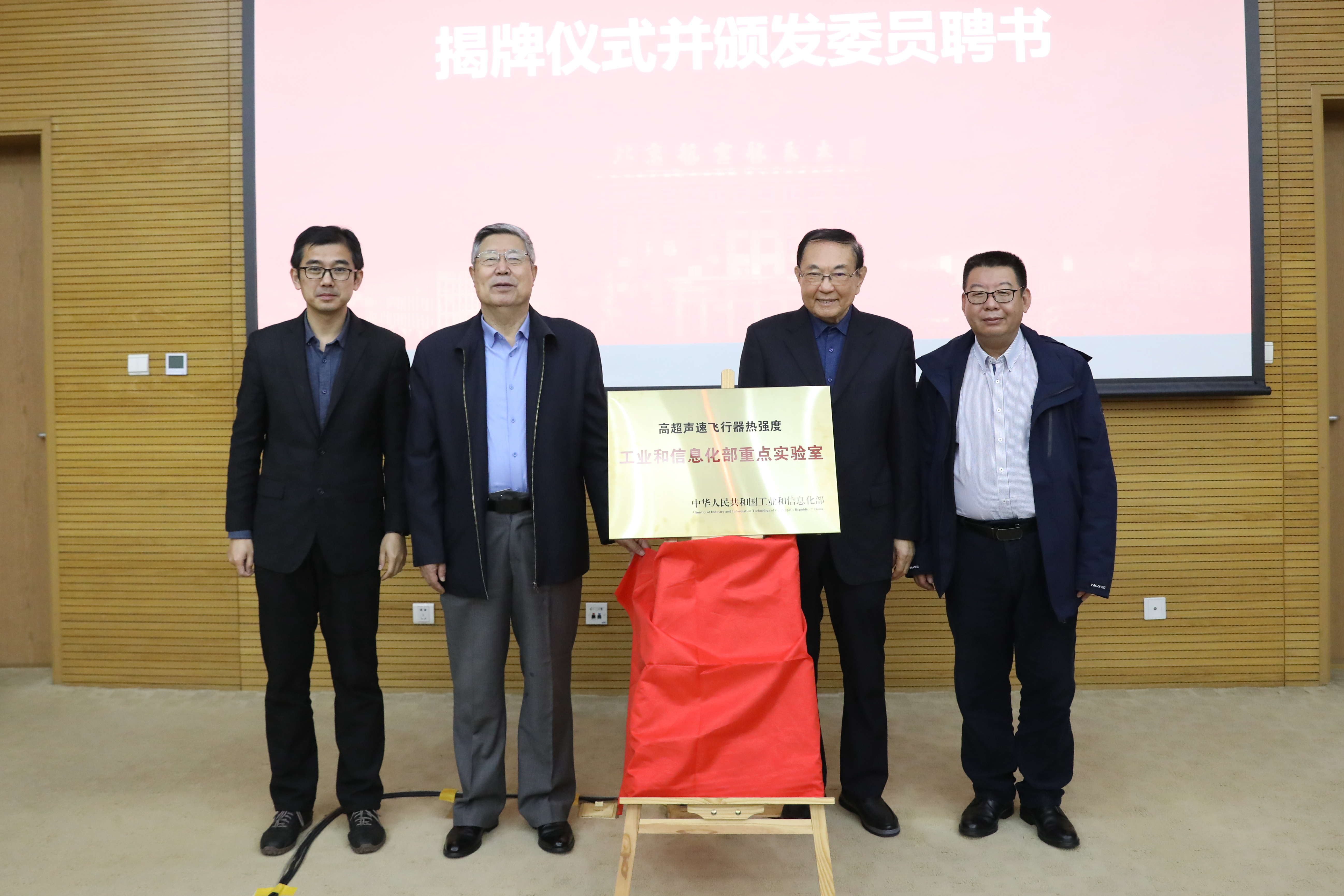 实验室学术委员会主任杜善义院士、闫楚良院士和北航校长助理、科研院院长杨立军、航空学院院长潘翀共同为实验室揭牌