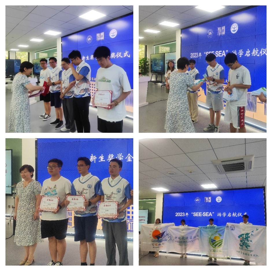 随后,举行了新生奖学金颁奖仪式和“SEE·SEA”游学启航仪式上,鲍蕊为获得新生奖学金的本科生代表颁发了奖学金证书,并为“SEE·SEA”游学团队学生代表颁授了队旗。