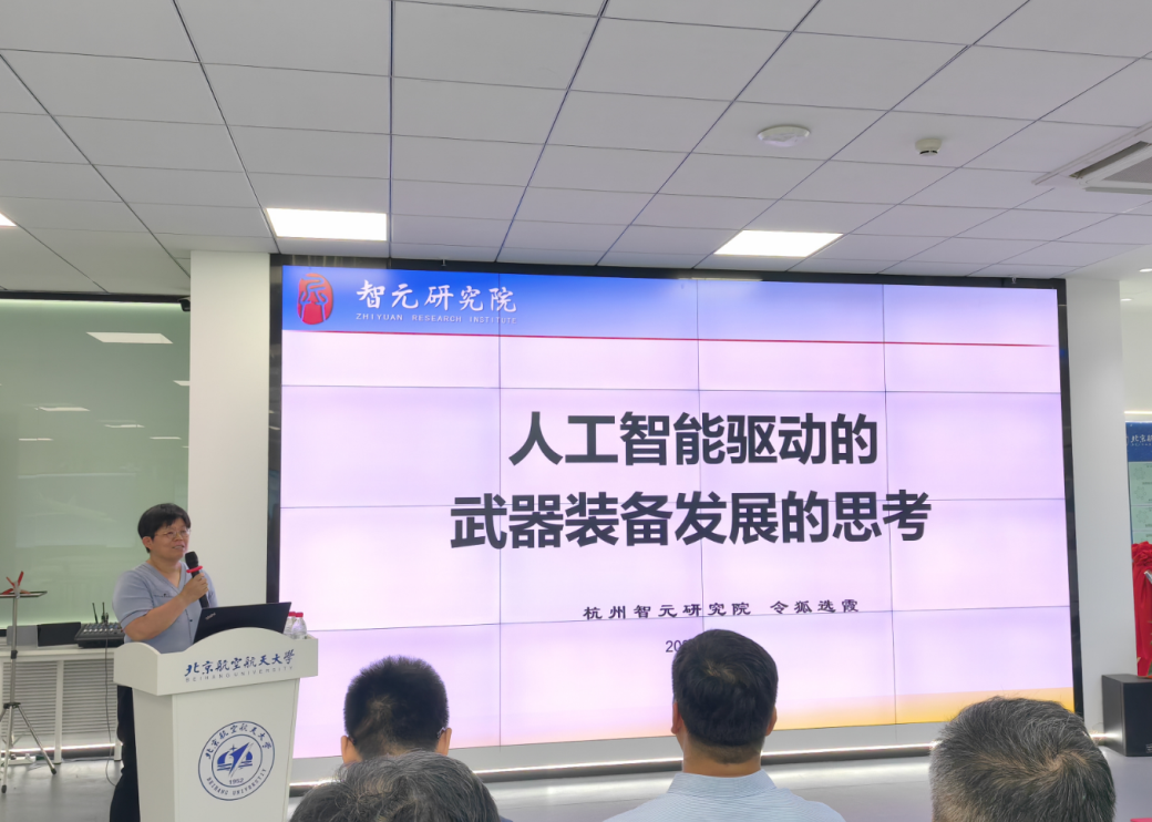 在论坛的主题报告环节,杭州智元研究院方向首席令狐选霞作了题为“人工智能驱动下的武器装备发展”的报告。令狐选霞针对人工智能大环境下的现代战争体系做了系统介绍,她指出,在人工智能迅速发展的当下,战争形式和方式也在不断发生变化,人机协同作战模式将从“一人一机”转变为“一人多机”,从创新无人机作战模式和我国实现大模型指导作战进程中可能面临的挑战进行了系统讲解。