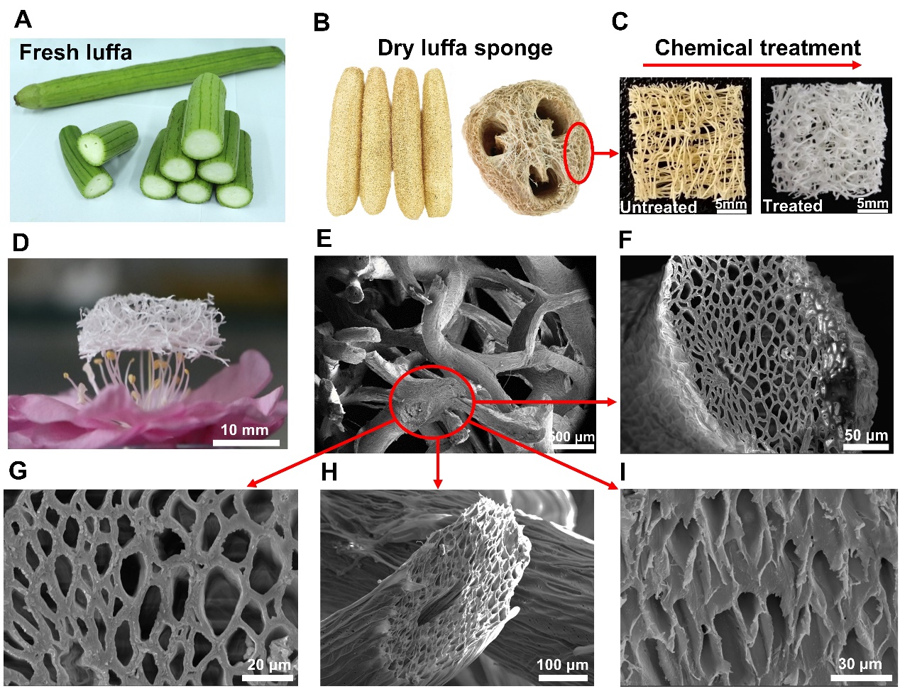 图1.丝瓜络可作为应变梯度发电机为智能设备充电