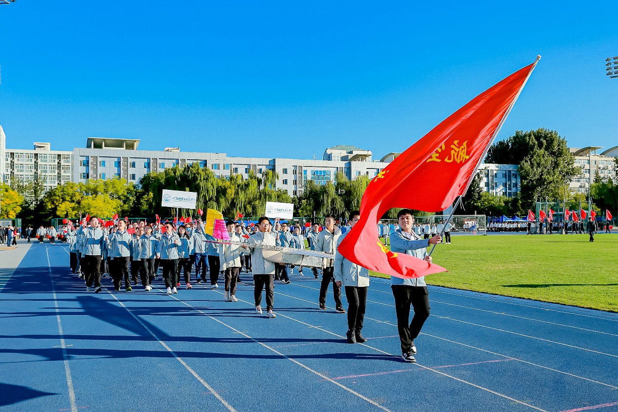 10月14日上午8时,伴随着激昂的乐声,运动会燃动开幕。航空学院师生方阵在党委书记鲍蕊、工会主席高振勋的带领下,身着统一服装,热情挥舞着手中的红旗,踏着铿锵有力的步伐,昂首挺胸的姿态与“凌云争锋、创智空天、科教协同、航向未来”的口号展现出航空学院师生激情、奋进、拼搏、超越的精神底色。