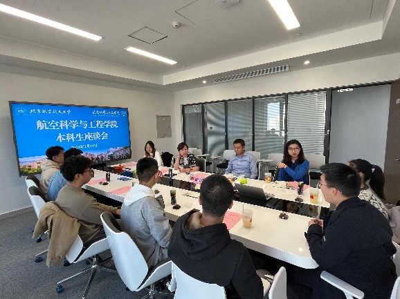 鲍蕊书记指出,学院始终坚持以学生为中心的发展理念,将优秀学生作为最重要的财富,鼓励同学们积极通过座谈会等各种渠道提出意见与建议,帮助学院共同解决大家关心关注的问题。她鼓励大家积极完成身份意识的转变,从被动式学习变为主动式探索,充分发挥个人主观能动性,利用好学院提供的各类平台与资源。最后,鲍蕊书记鼓励同学们要坚定信念、积极主动,提升本领、做出贡献,以实际行动践行以空天报国为内核的北航精神,学院将永远做大家最坚强的后盾。