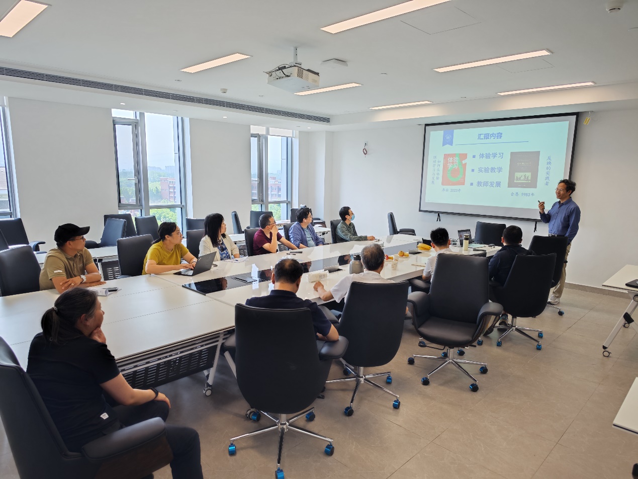 张教授的讲座围绕“从体验学习理论看实验教学”主题开展,将自己多年的育人教学经验传授给大家。包括:在体验学习方面,需要注重结构基础、学习风格和知识结构。课程思政要求:注重学思结合、知行统一,增强学生勇于探索的创新精神、善于解决问题的实践能力;在实验教学方面,注重思考的重要性、如何留探究性大作业、如何 成为体验教师;在教师发展方面:启发我们教育是师生共同探险的旅程,作为教师需要懂得示弱和留白,把发现问题、解决问题的机会留给学生!
