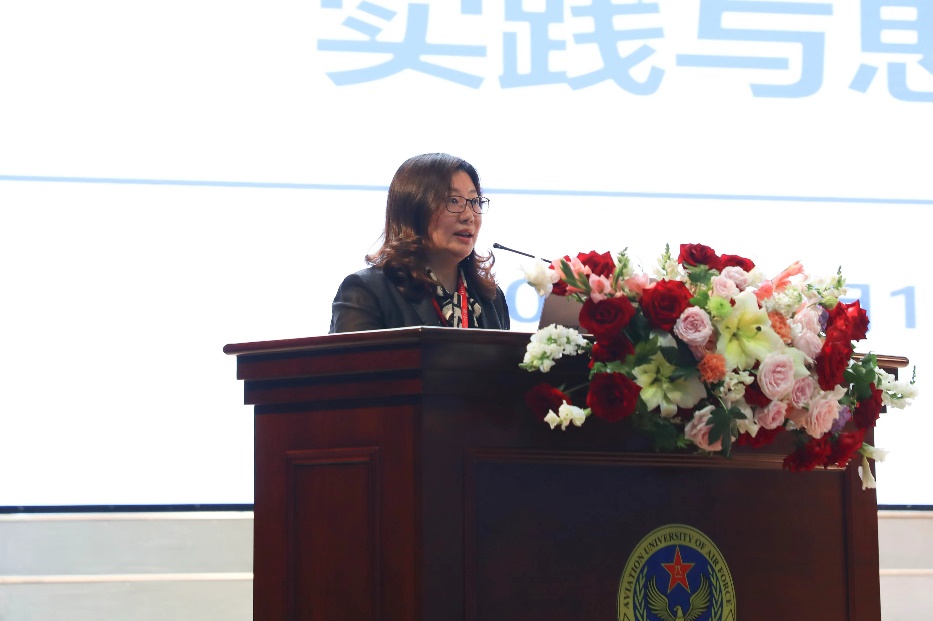 在论坛发言环节,邓怡围绕北航“双学籍”飞行学员培养的实践与思考做主题报告。她详细介绍了北航以“培养最讲政治、最懂飞机、综合全面的超一流飞行人才”为目标,在思想政治教育、航空专业学习、综合素质培养、学员关心关爱等方面所采取的举措,并提出下一步以军地协同加强“双学籍”飞行人员培养的有关建议。