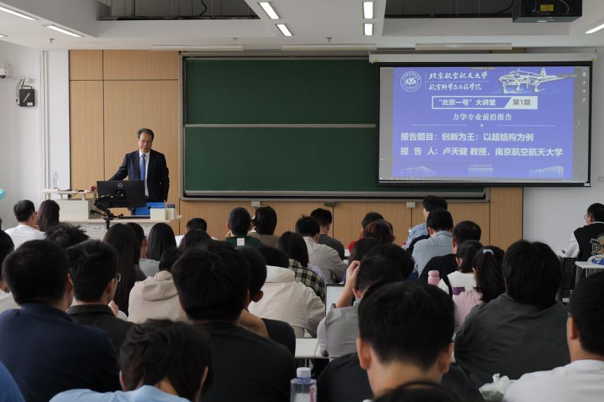 (通讯员 邵丽华 郭元东 胡姝瑶 闫东泽) 9月11日,航空学院“北京一号”大讲堂之力学专业前沿报告、人机与环境工程专业前沿报告在沙河校区4号教学楼顺利举办。“北京一号”大讲堂聚焦科技前沿与工程需求,引领航院学子体悟大科学观念、大工程视角、大先生风范,以期传承北航先辈“空天报国、敢为人先”的“北京一号”精神。新学期第一讲中,邀请到了南京航空航天大学卢天健教授、航天五院总体部苗建印研究员主讲。