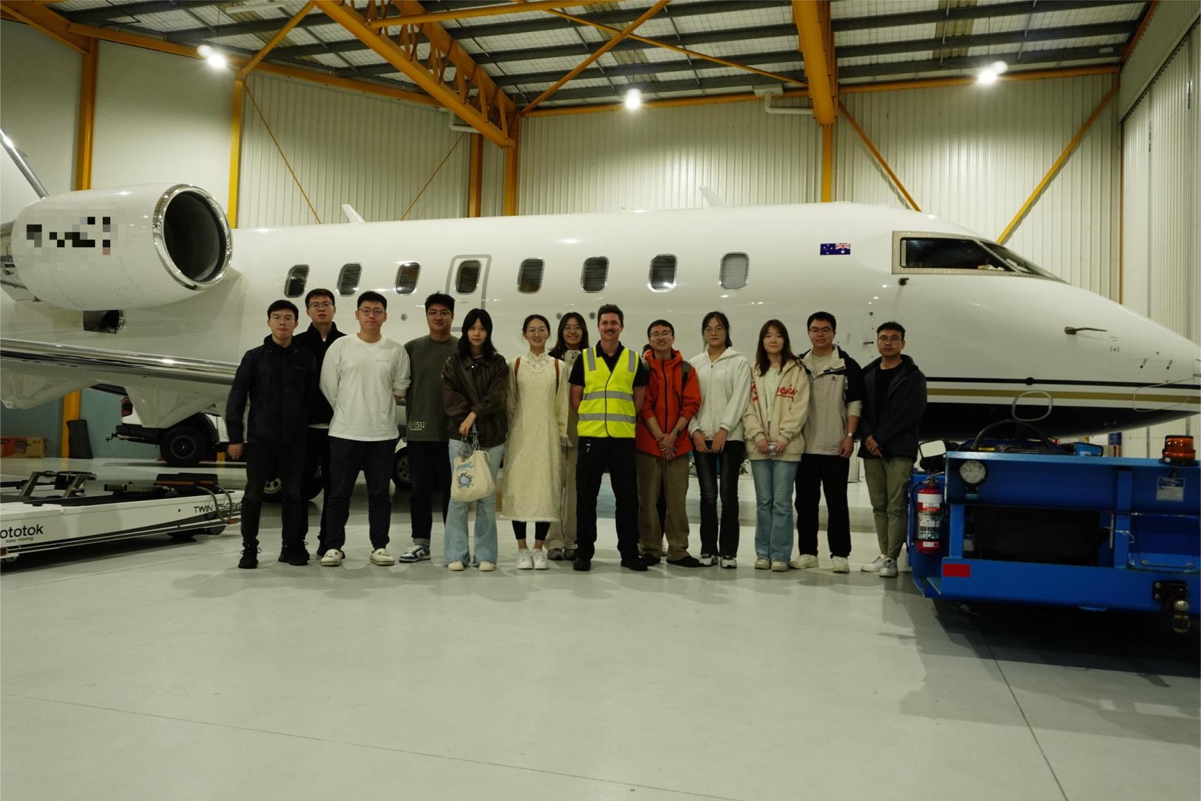 访学期间,同学们前往黄金海岸飞机租赁和管理服务公司Global Jet International进行学习参观。公司职员Mark介绍了公务机管理流程并带领同学们参观了公务机的降落及接待流程。同学们与Mark交流了飞机日常运营、保养、飞行成本等问题,理论与实践相结合的学习方式,极大地提升了他们的学习兴趣和专业技能。
