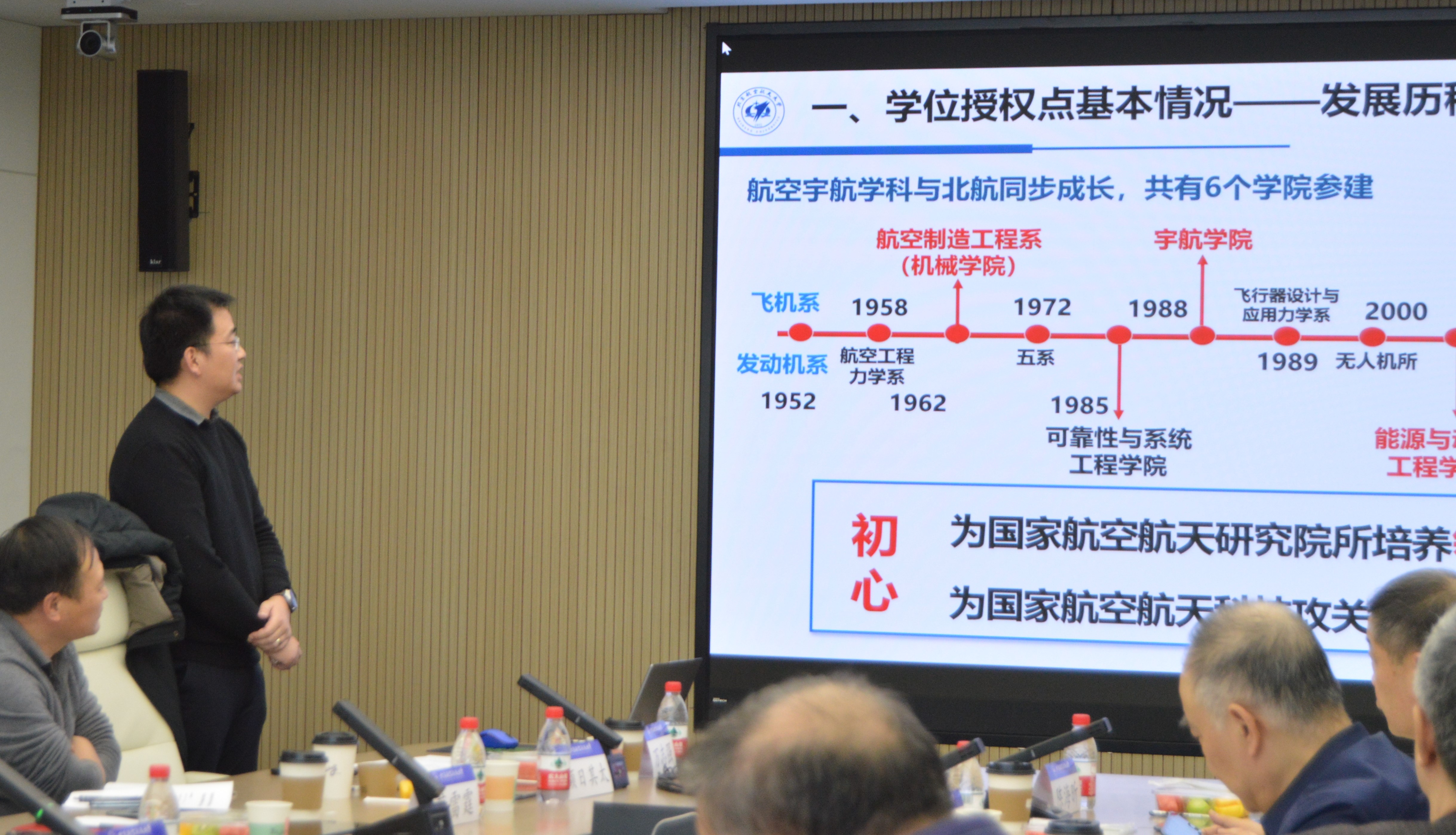 会议开场,潘翀作为主持人介绍了到场人员,并提名闫楚良院士担任评审组组长。航空宇航科学与技术学科责任教授杨立军作欢迎致辞,感谢评审专家对北航航空宇航科学与技术学科的关心,并简单介绍了北航航宇学位点的基本情况。随后,董雷霆详细地汇报了北航航空宇航科学与技术学位点的周期性建设情况和未来发展规划。