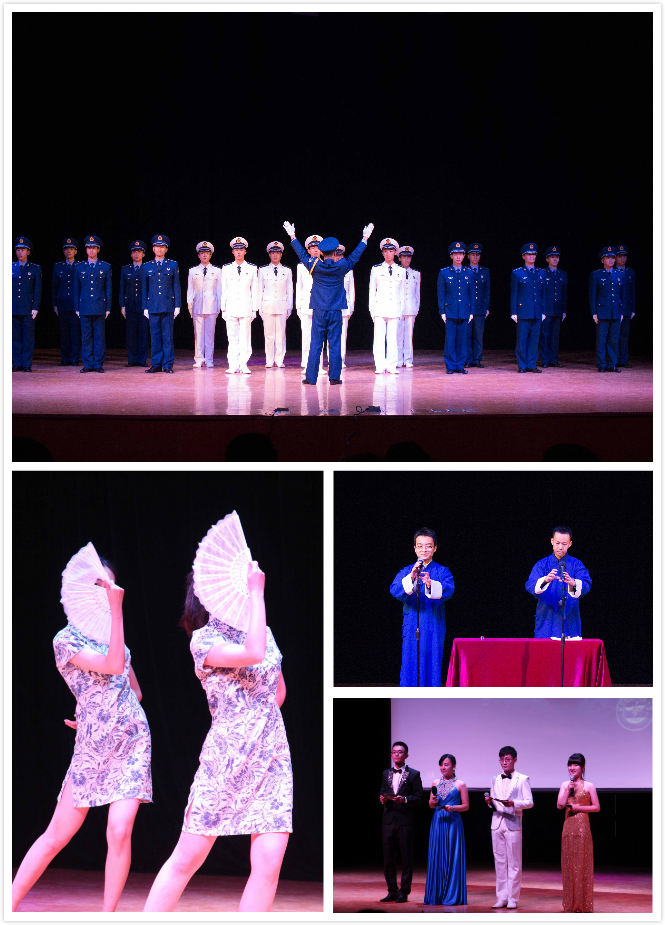 在优秀个人和优秀集体表彰的同时,新年晚会各个节目接连上演,赢得观众的阵阵欢呼与掌声:手风琴独奏《弹起我心爱的土琵琶》悠扬婉转;小品剧《新鸿门宴》搞笑逗趣,贴近生活,博得一片掌声;悠悠球表演《Spin Light》技巧性极强,一个个飞舞的弧线酷炫夺目;舞蹈《The Undead Love》在舞动的节奏中挥洒不服输的青春力量;相声《富二代》讽刺社会现状,反映当代青年幽默但不失深度的社会思考;吉他弹唱《贝加尔湖畔》,将观众带回了异国他乡的唯美氛围;扇舞团一曲《咏春》,刚毅与柔美结合,将晚会气氛推向了高潮;2015级双学籍飞行学员带来的合唱《蓝天召唤我》重磅压轴,飞行员的气势磅礴、热血澎湃,怒吼出新时代北航人的担当。