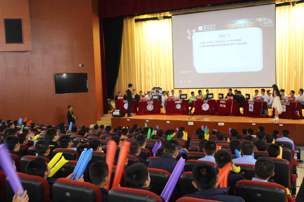 本次“飞豹杯”航空航天知识竞赛校内总决赛在校歌《仰望星空》的旋律中落下了帷幕。此次比赛丰富了同学们航空航天知识,为旨在传播空天文化、弘扬“四爱”精神、创造校园航空航天文化氛围的“飞豹杯”航空航天文化节添上了浓墨重彩的一笔。
