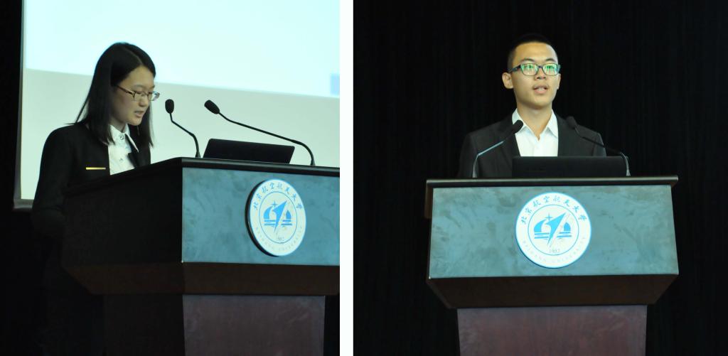 开学典礼上,140517班的高园园同学作为在校生代表发言,她回顾了自己一年来的经历,希望同学们用于突破、用于尝试,并期待与新同学共同努力、与航空学院一起成长。150512班的余浩同学代表全体新生抒发了对航空事业的热爱,表达了对即将开始的大学生活的憧憬和立志航空报国的决心。