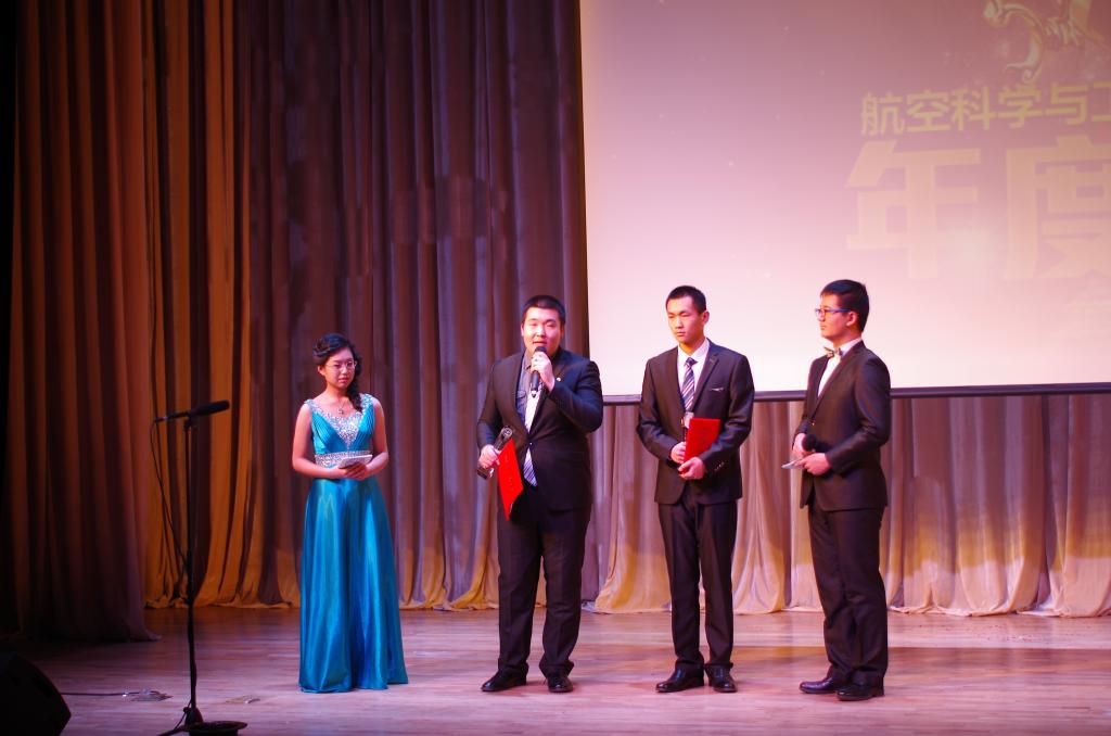 在节目逐个精彩上演的同时,优秀集体和优秀个人在大家热烈的掌声中受到了表彰嘉奖。北航航模队英国比赛团队、北航航空学院1205党支部志愿服务团队、北航微航空微信订阅号运营团队、437必赢会员中心足球队、“蜀道羌容”三校联合社会实践队赴四川省社会实践团荣获优秀团队奖,130519班、110519班、120513班荣获“优秀班集体”称号,常家明等10人荣获学习进步奖,李二龙等10人荣获“优秀党员”称号,含佳瑶捧骄阳梦拓小组、巡航小分队、文艺小分队、进击的小组、赫哥带你飞梦拓小组、龙小组获评优秀梦拓小组,首席执行梦拓杨海娥和梦拓官方网站创始人骆明获评优秀梦拓个人。王晓东、张良、郭方亮、傅作林、李海月、刘瑶获评航空学院最高荣誉——首届437必赢会员中心年度人物,年度人物代表王晓东、张良和刘瑶与大家交流了他们的心得体会。之后,院长杨超教授代表航空学院向所有师生表达新年的问候,并向同学们提出新的期望。和院长一起回顾昨天,成绩已然属于过去;聆听优秀航空人的故事,给予了我们新的一年前进的动力。新的一年,航空人将会更加努力,共创美好未来。