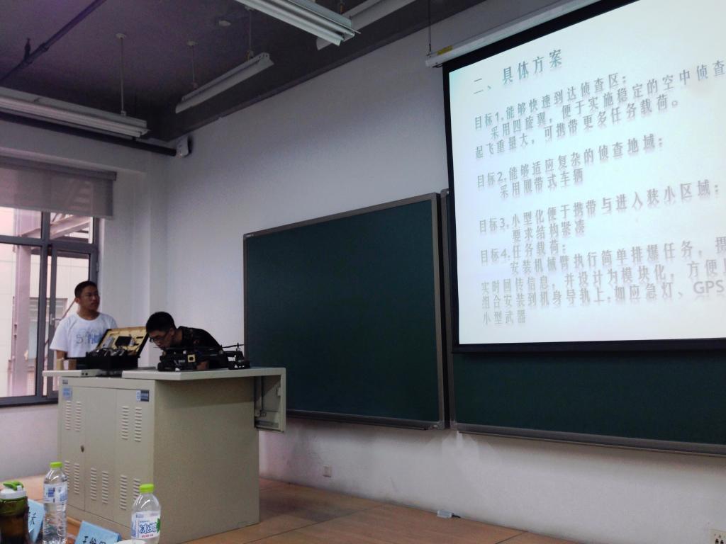 2014年4月28日下午2点,第24届“冯如杯”学生学术科技作品竞赛之“未来飞行器”专项竞赛决赛在新主楼F222教室进行,共有 16项学生作品和1项留学生作品通过了网络初评的突围,进入了当日的决赛答辩环节。决赛评审由来自航空学院的徐扬禾教授、何景武教授、张云飞教授和王维军教授担任,答辩由航空学院辅导员郭祖博主持。经过三个小时的精彩答辩,共评选出了一等奖1项,二等奖3项,三等奖6项。