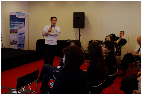 2014年4月17日,航空学院结构刚度设计研究室“梦想一号”公务机设计团队的严贤怀、马骏、王亚龙同学受邀参加了2014亚洲商务航空会议及展览会(ABACE)的“学生日”活动,并在活动上进行了展示、汇报和交流。