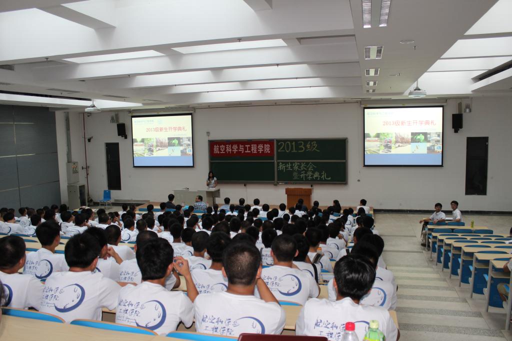 8月25日下午3时,航空学院2013级新生家长会暨开学典礼顺利举行。出席本次典礼的学院领导有院长杨超、副院长关志东、副院长王延奎、副院长李敏、院党委书记高静。本次活动由学院分团委书记钟国主持。参与本次活动的还有2013级部分班主任、2013级两位辅导员、新生及家长。其中徐伟强老师作为2013级班主任代表发言,姜添同学作为新生代表发言。