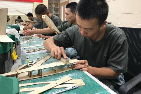 航模制作课由飞行器创新研究团队的教练们进行授课。在制作过程中,学员们遵从老师的教学要求,专心致志的制作自己的飞机。中途学生由于制作的生疏也偶尔会犯一些小的失误,老师也与学生一起及时补救,经常一起加班加点的制作。为期6天的制作时间里学生与老师打成一片,整个制作过程严肃中又不失乐趣。制作的最后一个下午,王老师就外场的安全进行了最后的安全动员,老师以自身经验言简意赅的强调外场秩序与要求,要求外场严格服从教练指令,要对每一次飞行报以敬畏之心。
