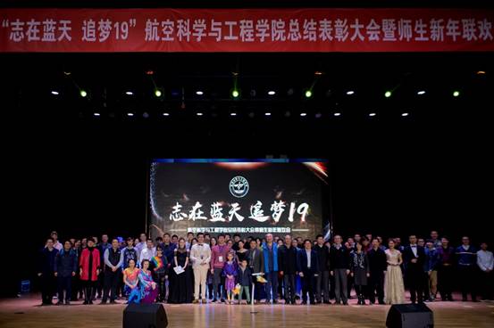 为总结2018年航空学院各方面工作,增进航空学院师生交流,联络校友感情,同庆新年,1月19日下午,航空学院全体师生欢聚北航晨兴音乐厅,共同举办“志在蓝天追梦19”航空学院总结表彰大会暨师生新年联欢会。会上集中表彰2018年教师队伍、学生队伍、党建工作中有突出贡献、取得优异成绩的师生;联欢环节,教师、学生和邀请表演嘉宾不吝才艺、载歌载舞,奉献了精彩的演出。航空学院党委书记林贵平、院长文东升等班子成员,学院校友理事会秘书长邓丹丹、中国人民大学艺术教育中心副主任费佳、校离退休工作处处长査国清、冯如书院执行院长高静、海军“双学籍”飞行学员教导金天球少校等嘉宾出席晚会。