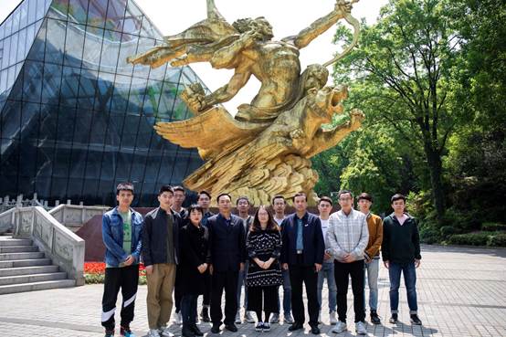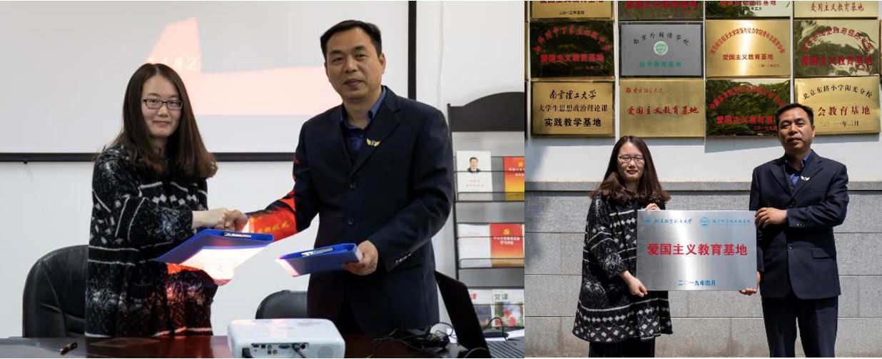 交流结束后,徐馆长与辅导员杨锐共同签署了《共建协议书》,并在南京抗日航空烈士纪念馆的挂牌陈列墙前共同挂上了北航航空学院“爱国主义教育基地”的铭牌,大家在“正义之神”大型雕塑前合影留念。