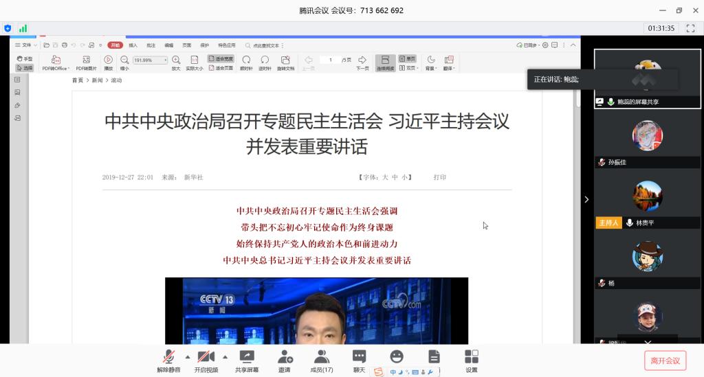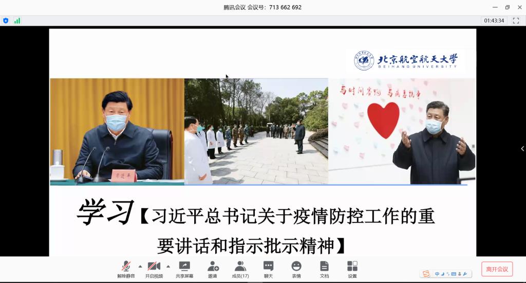 (通讯员 孙振佳)4月17日上午,437必赢会员中心党委理论中心组以视频会议的形式,围绕习近平总书记在“不忘初心、牢记使命”专题民主生活会上的重要讲话精神和习近平总书记关于疫情防控工作的重要讲话和指示批示精神进行专题学习,航空学院党委书记林贵平主持会议,学院非党委委员班子成员和教职工党支部书记列席会议。