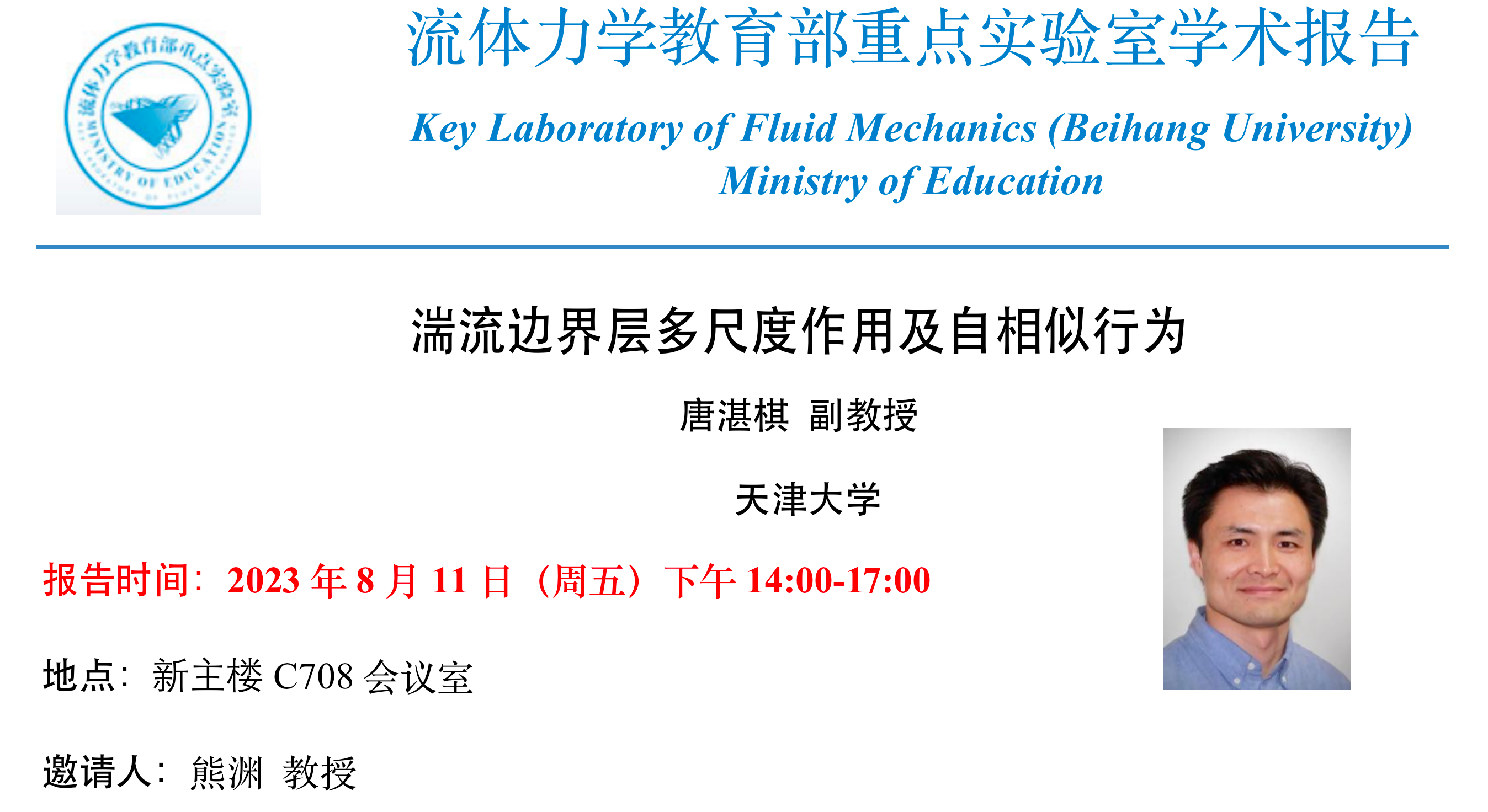 2023年8月11日,受熊渊教授邀请,天津大学唐湛棋副教授到我院流体力学教育部重点实验室做学术交流报告,报告题目为“湍流边界层多尺度作用及自相似行为”。报告由熊渊教授主持,437ccm必赢国际师生二十余人参加了学术报告。
